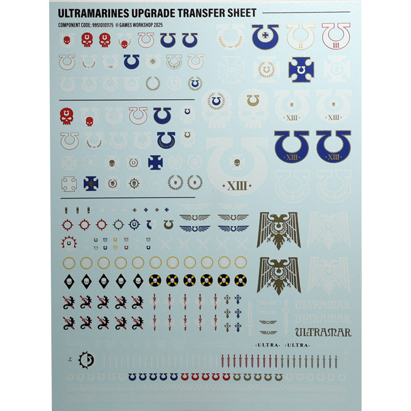 Warhammer 40K Games Workshop Ultramarines Upgrades & Transfers Transfers made by Games Workshop. It is a new, unused bit and has been carefully removed from...